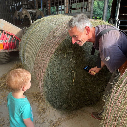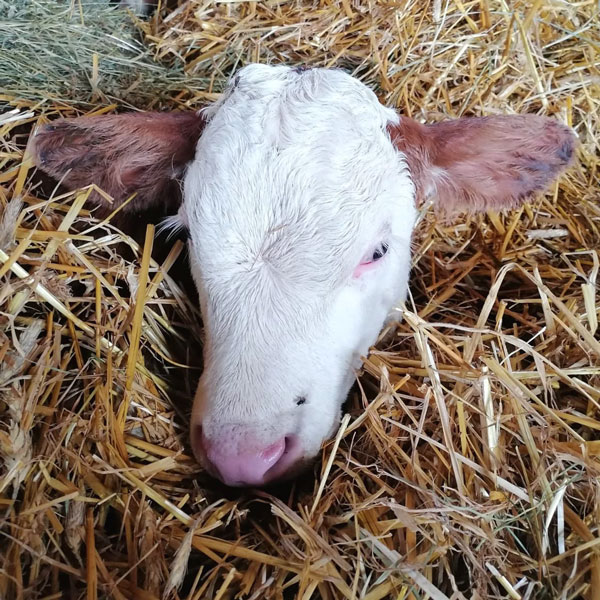 In unserem neu errichteten Tierwohl-Stall wachsen unsere Kälber gemeinsam mit ihren Müttern zu besten Bio-Rindern heran. Sie können sich im Stall und draußen das ganze Jahr nach Belieben frei bewegen und werden ohne Kraftfutter großgezogen – nur mit Muttermilch, Gras, Heu und Silage (fermentiertes Gras).