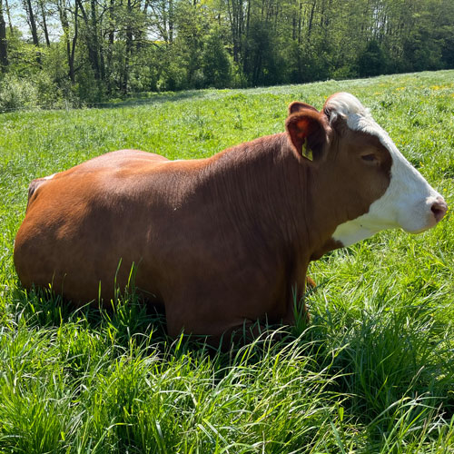 Wir kennen alle unsere Tiere beim Namen und haben eine persönliche Bindung zu ihnen. Neben der artgerechten Aufzucht liegt uns eine möglichst stressarme Schlachtung der Tiere am Herzen. Bis wir hoffentlich bald selbst am Hof schlachten dürfen, begleitet Bauer Erwin die Rinder persönlich zum nahegelegenen Bio-Schlachtbetrieb.